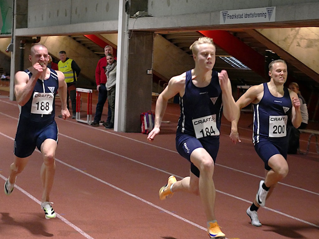 Elias Persen (17) gikk seirende ut av brødreduellen da han senket familierekorden til 6.98 sek. på 60 meter og ble førstemann under sju sekunder. I søndagens stevne i Østfoldhallen, var det duket for prestisjeoppgjør mellom brødre på 60 meter. Etter flere jevne oppgjør, har det ligget i luften at en av brødrene ville bryte den magiske grensen. Spørsmålet var bare hvem og når. Så var det altså yngstemann som trakk det lengste strået. Han spurtet inn til 6.98 sek. som er fire hundredeler bak klubbrekorden til Didrik Grøm på 6,94 sek. Så nå burde den være noe å bryne seg på. Kristoffer Persen (25) var ikke snauere han heller, enn at han satte personlig bestenotering med 7.00 sek. Veteranen Espen Ulriksen (36) fikk personlig bestenotering og den utmerkede tiden 7.13 sek. i et gnistrende løp. Med til brødre-historien hører også at Marius Persen vant lengde uten tilløp med personlig bestenotering på spenstige 3.09m.